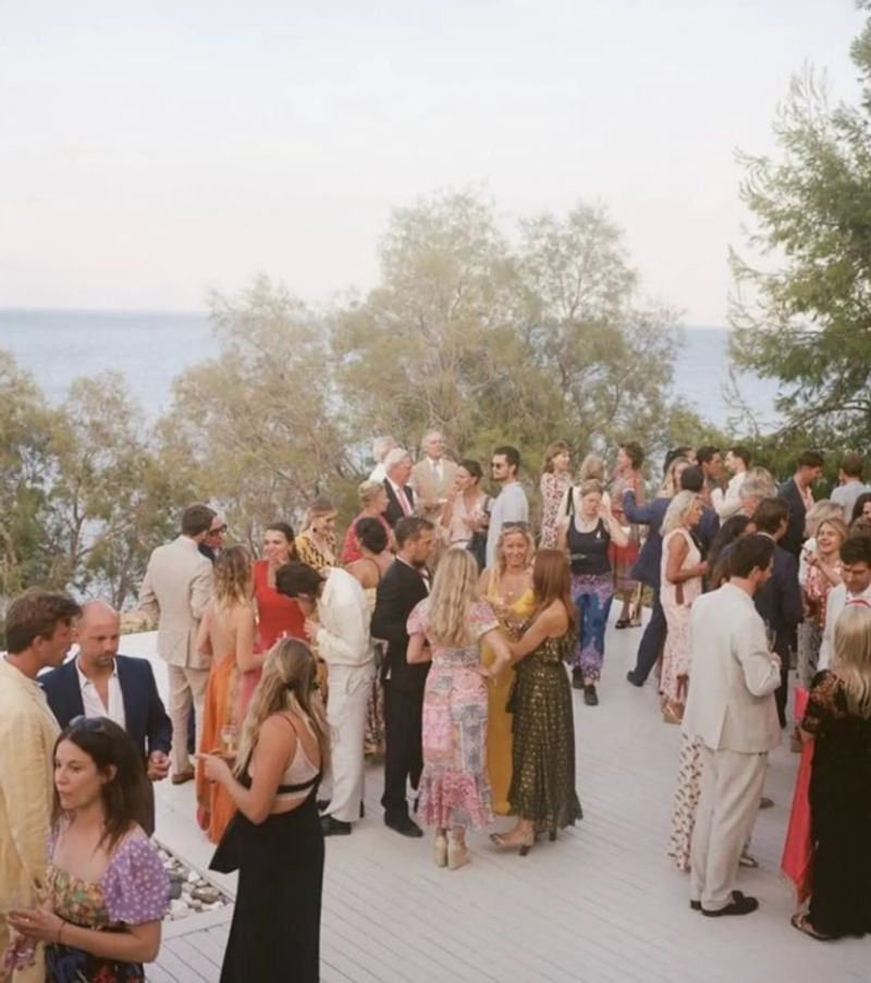 Para as mulheres, pensem em vestidos. Lembrando que o branco e off-white ficará exclusivamente para noiva, assim como as cores azul serenity, e lavanda para damas e madrinhas. Como a cerimônia acontecerá em área com deck, a recomendação às mulheres é que optem por sapatos de salto bloco.